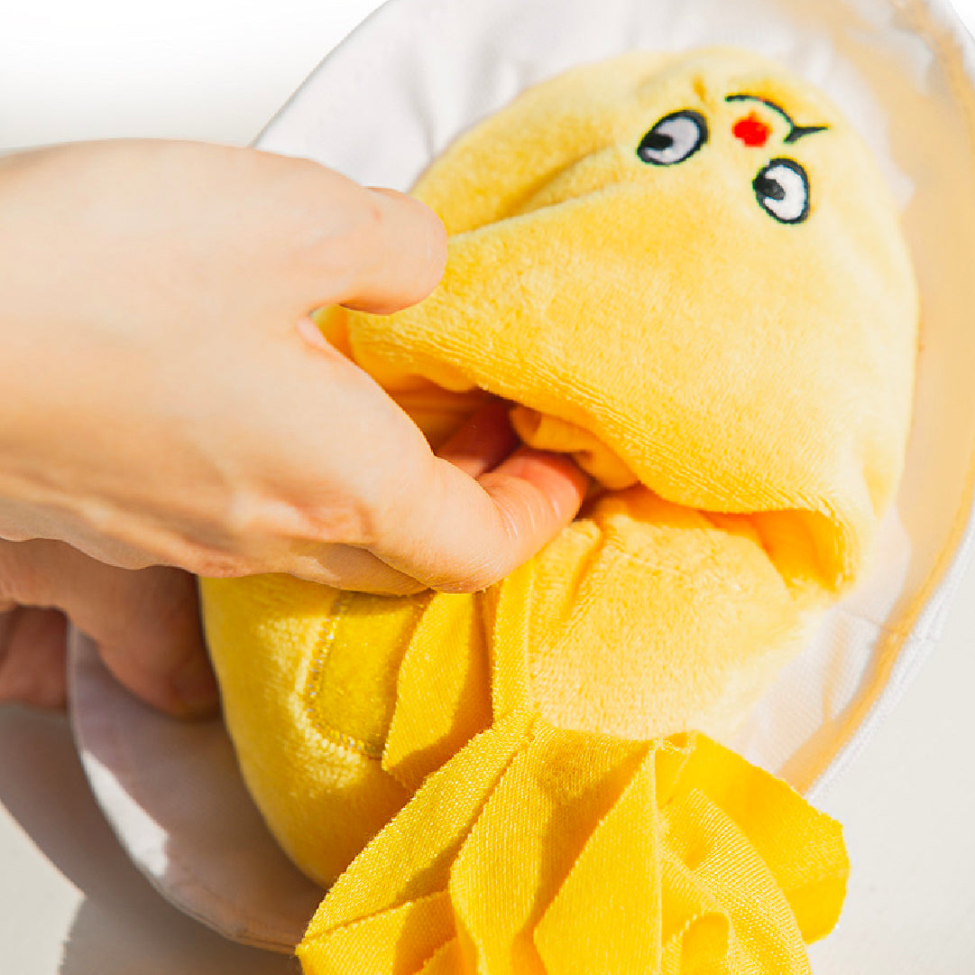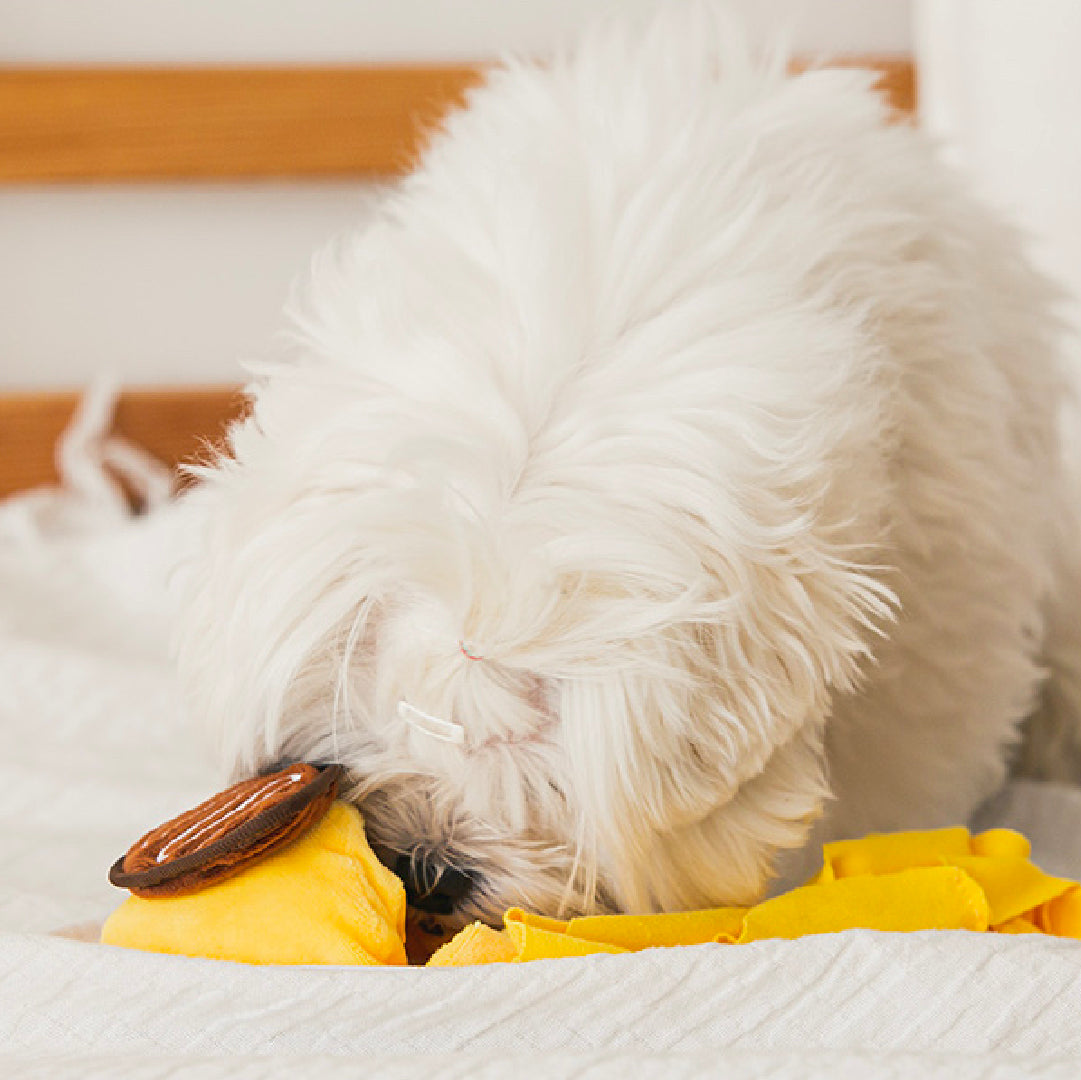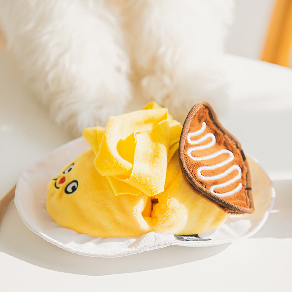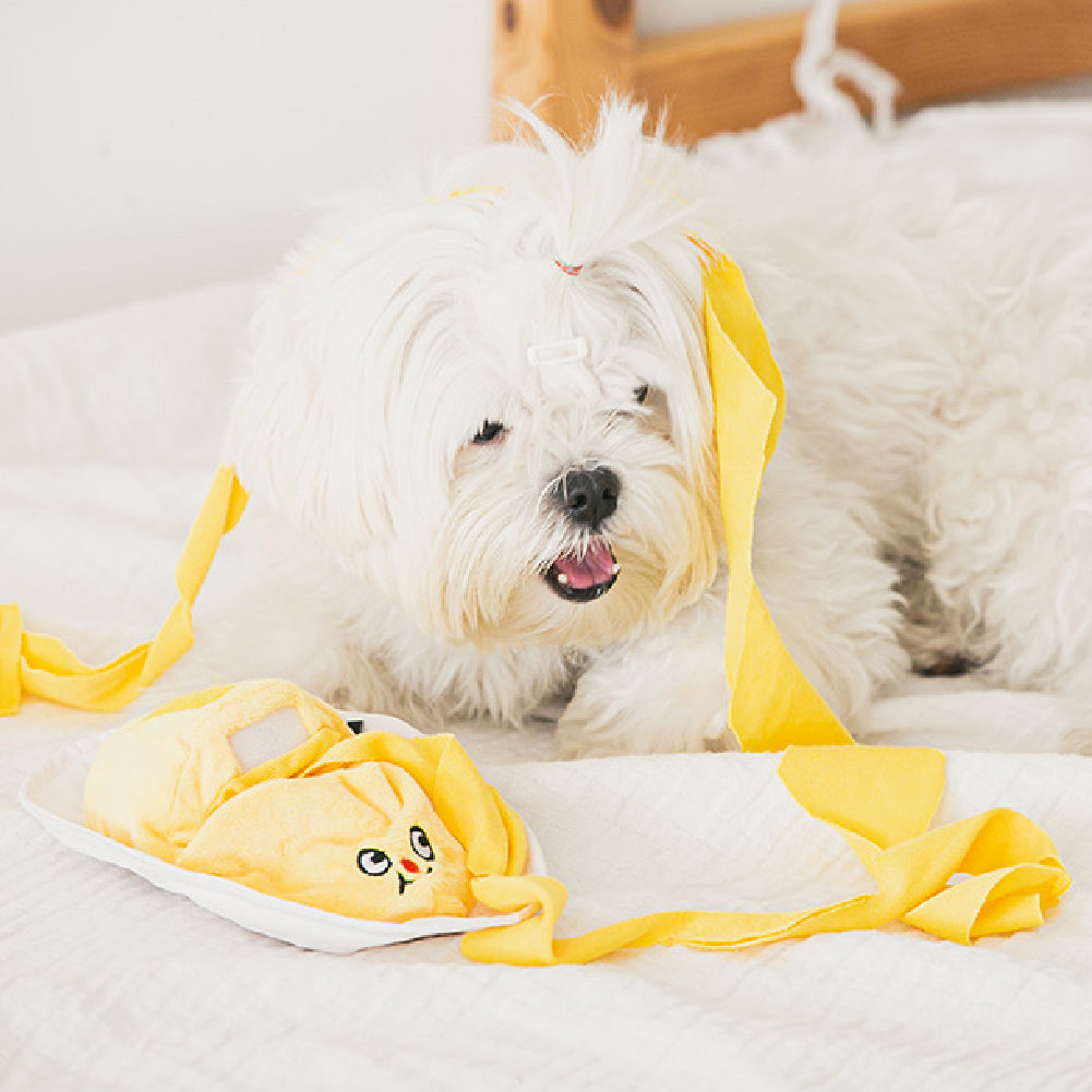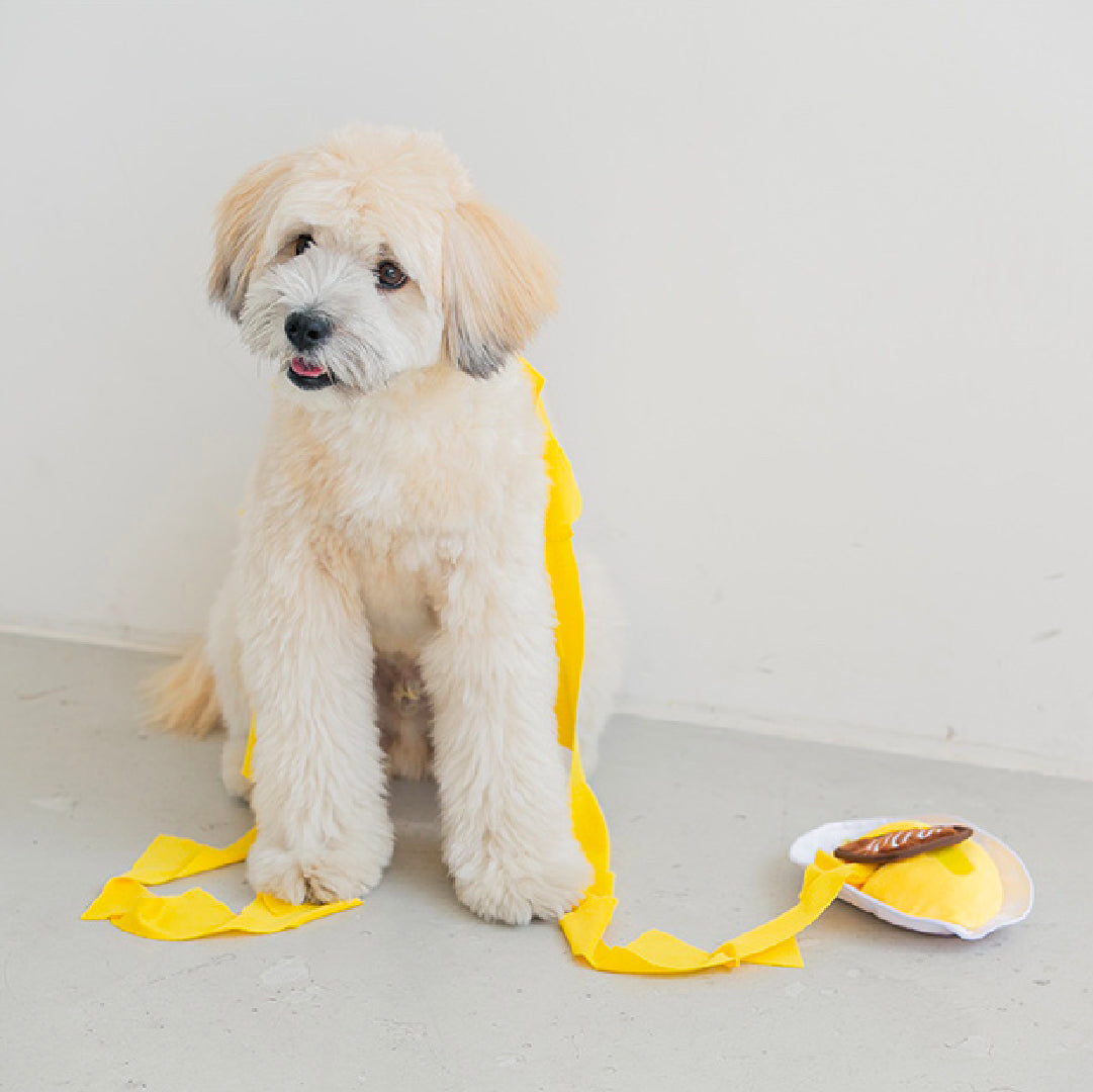 The Bite Me omelette nosework toy features a 2-meter long soft cloth to hide the treats and topped off with a piece of crinkly brown sauce. Once you hide treats in the omelette, your dog can play the game of finding snacks using his nose. The attached Velcro is made of soft material that minimizes skin irritation.